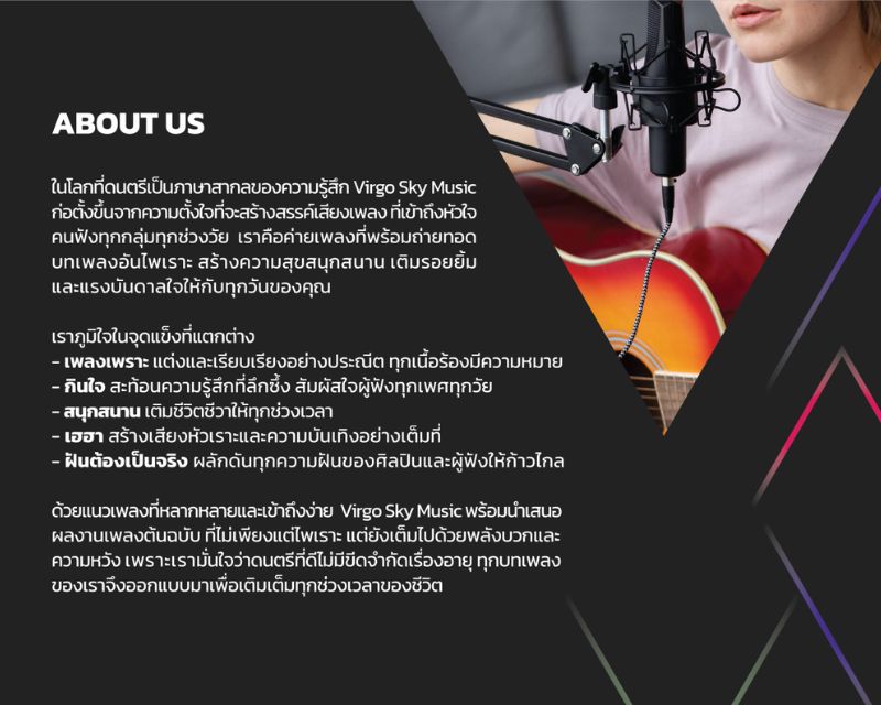 สำหรับพี่เปี๊ยบแล้ว “ความจริงใจกับสิ่งที่ทำ” และ “ความรักในดนตรี” คือหัวใจของการสร้างผลงานที่ยั่งยืน เขาจึงตั้งใจส่งต่อโอกาสและแรงบันดาลใจนี้ให้ศิลปินในค่าย Virgo Sky Music เพื่อร่วมกันสร้างสรรค์ เพลงที่มีทั้งคุณภาพและความหมายต่อผู้ฟัง